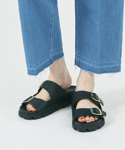 程よいボリューム感が今年らしいモード感を演出大ぶりなダブルベルトと程よい厚さのボリュームソールを使用し、モードな雰囲気を感じるカジュアルサンダル。定番のブラックはもちろん、スタイリングのアクセントにホワイトやピンクもおすすめです。※一部撮影画像は、光の当たり具合で色味が違って見える場合があります。商品の色味は白背景のスタジオ撮影画像をご参照下さい。※画像の商品はサンプルです。実際の商品と仕様、加工が若干異なる場合があります。※輸送中に傷が付くことを予防する為にソールに保護シートが張られている商品がございます。保護シートが張られたままご使用になると滑りやすく危険でございますので必ず剥がしてからご使用ください。また、全ての商品に保護シートが張られている訳ではございませんのでご了承ください。