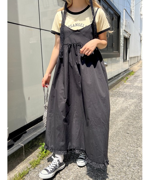 ビスチェ風デザインがポイントのロングワンピース■detail肩ひもはアジャスター付きで調整可能。後ろがゴム仕様になってるのも嬉しいポイントシンプルながらも裾のフリルでカジュアル過ぎない印象に◎Tシャツとの着用はもちろんシアーシャツやカーディガンを羽織ったりロンTとも合わせれて長い期間着用できます。【WC ZOZOTOWN お買い物ガイド】▼商品のお気に入り登録商品ページやブランドTOPの♡をクリックするだけ◎再入荷通知や、ラスト1点の通知、セールの通知をすぐに受け取れます。【商品画像について】・画像はサンプルです。実際の商品と仕様、加工、サイズ、カラーが若干異なる場合がございます。・撮影場所や照明の照射・角度、お使いのモニター環境によりお色味が異なる場合がございます。予めご了承ください。【取り扱い注意事項】・素材の特性上、水や汗で濡れたまま長時間放置することはお避け下さい。・濃色のアイテムは移染の恐れがあるため別洗いにしてください。・アテンションタグを必ずご確認の上、ご使用下さい。・生地の素材上、においが気になる場合がございます。その際は陰干しして頂くと、ほとんど感じられなくなります。【サイズ表記について】・表記しているサイズは、すべてスタッフが採寸した実寸値になっております。・正確なサイズを測るよう心掛けておりますが、採寸用サンプルの実寸値となりますので、 お届けする商品と表記寸法の間に多少の誤差が生じる場合がございます。・商品により±2cm程度サイズに誤差がある場合がございますので、予めご了承ください。