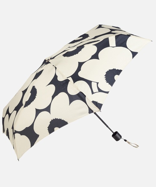 【テキスタイルデザイン:Maija Isola(マイヤ・イソラ)】 Unikko(ウニッコ):けしの花 Marimekkoを代表するUnikko柄の折りたたみ傘。カバンに入れて携帯できる便利なアイテム。ケシの花のモチーフを全面にプリントした華やかなデザインが魅力。ロゴタグ入りの同柄の専用のカバー付き。ストラップ付きで持ちやすいのもさりげないポイント。雨の日が楽しくなる明るいムードのデザインのアイテムです。 ※断裁により商品ひとつずつの柄の出かたが異なるため、表示画像のディテールと多少異なるデザインのものが届く場合がございます。予めご了承ください。