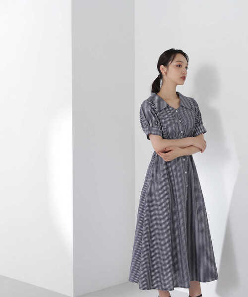 <オフィスカジュアル・デイリーにおすすめ> [design & styling] 大きめな襟がポイントのシャツワンピース。たっぷりとしたフレアシルエットと、やや長めの半袖でクラシカルな雰囲気がありながら、胸元をすっきりと仕上げることで抜け感をプラス。ウエストはシャーリングデザインで、ウエストマークしながら、程よいフィット感で着心地良い仕上がりです。 ボタンはすべて開けることができます。 [fabric] ブラックとブラウン:後染めでハリ感がありナチュラルな風合いの素材、ネイビーストライプ(ブルー系その他):NBBオリジナルのストライプ柄で先染めの素材を使用しています。※スカート部分のみ裏地あり ※モデルの着用画像の場合、光の当たり具合により、実際の色味と異なって見えることがございます。色味は、商品単体の画像をご参照ください。 【スタッフ着用コメント】 町田東急ツインズ店NBB staff/身長:155cm/普段サイズ:XS,S/着用サイズ:M/骨格:ウェーブ 着用感:155cmの私で足首が見える丈だったので低身長さんでも軽やかな印象で着ていただけます!普段着用サイズはSサイズですが、太めのゴムでしっかりとウエストマークがされているのでMサイズでも大きく見えずすっきり着れました。素材は見た目より軽くサラッとしていますが、ハリ感があるのでフレアシルエットをきれいに保ってくれ、スカート部分には裏地が付いているので一枚で安心して着れるワンピースです。 【スタッフ着用コメント】 新宿ミロード店NBB staff/身長:158cm/普段サイズ:S/着用サイズ:M/骨格:ナチュラル 着用感:クラシカルな印象のビッグカラーと首元の開きが顔周りをスッキリ華やかに見せてくれるシャツワンピース◎さらっとしたシャツ素材で今の時期から秋まで大活躍間違いなしの一枚です。163cm、M着用でふくらはぎ真ん中のすっきりとした着丈です。ウエストはシャーリングゴムでデザイン性はもちろん、締め付け感無くリラクシーにお召し頂けます。スカート部分は裏地つきのため1枚で安心してお召し頂けます◎ 【ZOZOでのお買い物をもっと楽しむために!】 ■ブランド・ショップのお気に入り登録 ・いち早く新作アイテムや限定クーポンなどのお得な情報を受け取ることができます! ■商品のお気に入り登録 ・完売商品の再入荷通知や、残り1点の通知、各種セール通知も受け取ることができ、よりお得にお買い物頂けるチャンスがあります!