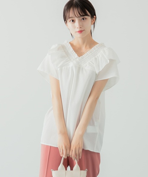 トレンドのシャーリング デザイン〇夏らしいサラッとした素材〇甘すぎないフリルデザイン〇二の腕もしっかり隠してくれる袖丈stylingデニム合わせでカジュアルミックスしたスタイリングやストレッチ スカート合わせで綺麗目なスタイリング等、幅広く楽しんでいただける万能アイテムです。【2023 Spring/Summer】※この商品は、色の特性上、直射日光や蛍光灯に長時間あてますと変色する恐れがございます。ご着用や保管の際は、充分ご注意ください。※素材の特性上、洗濯の際に多少の縮みが生じる恐れがあります。ご了承ください。※その他お取り扱いに関しましては、商品に付属のアテンションタグをご覧ください。※商品画像は、光の当たり具合やパソコンなどの閲覧環境により、実際の色味と異なって見える場合がございます。予めご了承ください。※商品の色味の目安は、商品単体の画像をご参照ください。▼お気に入り登録のおすすめ▼お気に入り登録商品は、マイページにて現在の価格情報や在庫状況の確認が可能です。お買い物リストの管理に是非ご利用下さい。-----------------------------透け感:あり伸縮性:なし裏地:なし光沢:なしポケット:なし-----------------------------