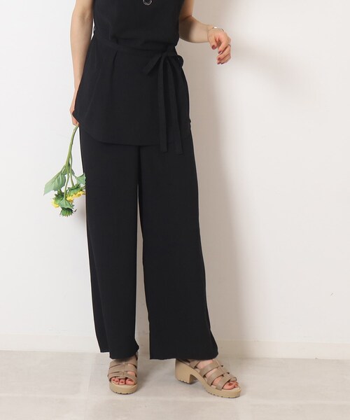【デザイン】 凹凸のある素材が特徴的なイージーパンツです ウエストゴム仕様でストレスフリーで着用していただけます。 太すぎないストレートシルエットでオーバーサイズのトップスとの相性◎です。 同じ素材のトップス(256-17006)と合わせてセットアップとしても着用出来ます。 ※ポケット数:右後ろ×1 【スタイリング】 忙しい朝もコーデに迷わずさっとキマる時短コーデの味方、セットアップ可能なアイテム! セットアップ以外にもTシャツやシャツを合わせたカジュアルコーデや、 ブラウスと合わせた大人っぽいスタイリングもおすすめです。 タンクトップとカーディガンをやシアーシャツを羽織ると大人のヘルシーコーデが叶います。 また、シワになりにくい素材なので夏の旅行に持参したり、 映画やドライブなど長時間座っていてもシワを気にせずにお召しいただけるので、 お出かけに毎回着ていきたくなるような1枚です。 【素材】 凹凸感のある楊柳素材を使用しているので、涼し気に見せてくれます。 さらりとした肌触りで肌に張り付きにくく暑い時期におすすめ。 ※膝丈までの裏地あり ※こちらの商品の裏地がない部分はやや透け感があります。 モデル情報:身長164cm B78 W56 H80 着用サイズ:02(M) 店舗へのお問い合わせ商品番号:256-67001 ●製品寸法: 01(S):W58~68cm H82cm 股下64cm 前股上30cm 渡り幅30cm 裾幅27cm 02(M):W61~71cm H86cm 股下65cm 前股上30cm 渡り幅31cm 裾幅27cm 03(L):W64~74cm H90cm 股下66cm 前股上31cm 渡り幅32cm 裾幅28cm 備考: