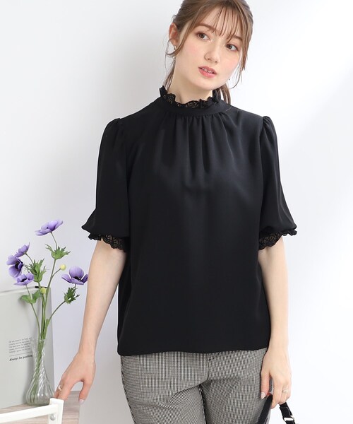 「女性らしさを引き立てる」上品刺繍チュールレースフリル襟のパフ袖ブラウス ~POINT~ ・衿口と袖口に繊細な柄域の刺繍チュールレースフリルを施した、前後2WAY着用可能な5分袖ブラウス ・ボタン開きデザインが基本の前身頃ですが、ボタンを前にするスタイルも華やかでオススメです。 ・袖口にはゴム入りなのでパフ具合もお好みで変えていただけます。 ・オフィススタイルにも、デートやお出かけシーンにもオススメです。 【ディティール・機能】 ・透けにくいジョーゼット生地を使用しています。 ・共地くるみ釦は全開閉可能な仕様 【スタッフコメント】 ・maki(163 ) 毎年大人気の定番アイテム! 5分袖デザインなので二の腕カバー感があるのも嬉しい◎ 秋までお使いいただけるロングシーズン対応アイテム。 前後でイメージチェンジできる2WAYデザインが、オンオフ着回しできるポイントです! モデル情報:身長163cm B81 W56 H82 着用サイズ:38(M) 店舗へのお問い合わせ商品番号:508-87005 ●製品寸法: 34(SS):着丈52cm B104cm 袖丈36cm 肩幅33cm 38(M):着丈54cm B110cm 袖丈38cm 肩幅35cm 40(L):着丈55cm B113cm 袖丈39cm 肩幅36cm 42(LL):着丈56cm B116cm 袖丈40cm 肩幅37cm 備考: