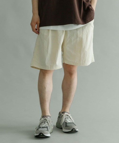 リラクシィなシルエットで仕上げたアクティブショーツ 軽量性、耐摩耗性に優れたナイロン100%素材のリラックスショーツ。ウエストはウェイビングベルトを搭載し、股下にはガゼットを施しより快適な履き心地を追求しました。マルチにスタイリングできるダークカラーと夏らしいトレンドカラーで展開します。 【2023 Spring/Summer】 ※こちらの商品の股上部分は、平置きの状態でガゼットも含め採寸しております。 ※商品画像は、光の当たり具合やパソコンなどの閲覧環境により、実際の色味と異なって見える場合がございます。予めご了承ください。 ※商品の色味の目安は、商品単体の画像をご参照ください。 ▼お気に入り登録のおすすめ▼ お気に入り登録商品は、マイページにて現在の価格情報や在庫状況の確認が可能です。 お買い物リストの管理に是非ご利用下さい。 素材感 透け感 : ややあり(BONEのみ) 伸縮性 : なし 裏地 : なし 光沢 : なし ポケット : あり