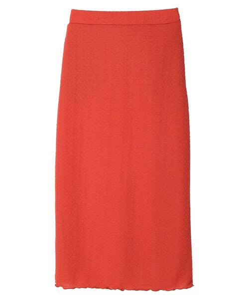 表面感のあるふくれジャカードが表情豊かな雰囲気を演出するスカート。すとんとしたナローシルエットで、縦のラインを強調してくれます。ゴム仕様のウエストがお腹を締め付けない着心地を実現◎トップスをタックインしたメリハリのあるコーディネートがおすすめです。透け感[やや有り] 裏地[無し] 伸縮性[やや有り] 光沢感[無し] 生地の厚さ[薄手] 付属品[無し] ポケット[有り]前2つ●製品寸法:F:ウエスト[ゴム仕様]64cm ヒップ98cm 総丈88cm備考: