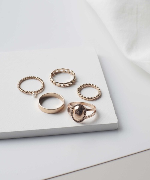 ヴィンテージライク セット リング小粒パールやストーン、シンプルなワイドリングなどを含めた3種類のセットリング!それぞれデザインが違うのが嬉しいところ◎ヴィンテージ風の加工が落ち着いた雰囲気を漂わせ、組み合わせ次第で様々な表情を見せてくれます。左右さまざまな指に付けるとオシャレ度がいっきにUP☆それぞれバラしてお使いいただいても、お手持ちのリングと重ね着けしても印象が変わり楽しめます◎カジュアルなスタイルにはもちろん、モードスタイルにもおすすめです!結婚式や二次会などのパーティーシーンなどにもおすすめです!※撮影・モニター環境等により実際の商品の色味と異なって見える場合がございます。【インフォメーション】◆商品のお気に入り登録完売カラーの再入荷通知を受け取ることができます。ぜひご登録ください♪◆ブランドのお気に入り登録新商品や再入荷などのお得情報を受け取ることができます。ぜひご登録お願いします。