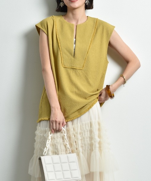 今季トレンドのベスト旬なスタイルが決まるサマーベスト。腰回りがしっかり隠れるチュニック丈でフロントの深めのスリットがスタイルアップ効果も◎裾やヨーク切り替えにさりげなくフリンジを施しました。さらりと着るだけでこなれたスタイルに決まる優れものです。シンプルにTシャツやカットソーを合わせたり、ワンピースの上からレイヤードするスタイルもお勧め。セットアップをご希望の方は同じ素材でスカートのご用意もございます。(品番 22126083)■取り扱いご自宅でイージーケア(手洗い)ができます。INTERPLANET/actuel(インタープラネット/アクチュエル)・conceptいつだって私らしく、私自身のスタイルが決まる。。。時代や年齢に媚びない『らしさ』を纏って生きる女性へ。旬なベーシックと抜け感のあるカジュアルをMIX。そんな大人カジュアルコーデを提案します。・お気に入りの登録についてショップ、ブランドのお気に入り登録でクーポンやタイムセールの通知などお得な情報を受け取ることができます♪また、気になるアイテムのお気に入り登録でセールや再入荷の通知など受け取ることができます