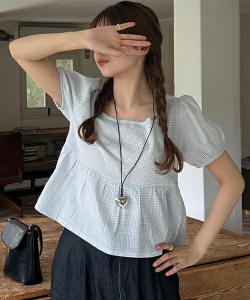 DHOLIC(ディーホリック)の「ペプラムチェックブラウス(シャツ/ブラウス・レディース・ブルー・FREE)」の1枚目の写真
