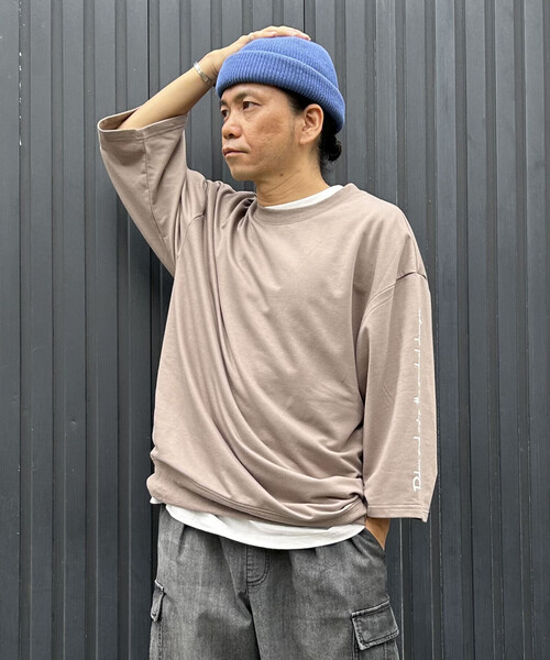 《デザイン》左袖にメッセージプリントを入れたビッグ7分袖プルオーバーです。広めの身巾、袖幅、ドロップショルダーにより、ゆったりとしたビッグシルエットにしています。裾をリブで少し絞ることでシルエットに締まりがうまれ、スッキリとさせています。【素材】●カラー/#04グレー[32/-×32/-CVCインレイ]CVC糸と呼ばれる綿高混率の綿とポリエステルの混紡糸を使用したインレイ素材です。●カラー/#34グレージュ・/#24パープル[32/-×32/-T/Cインレイ]ポリエステルが高混率の混紡糸を使用したインレイ素材です。ポリエステルが高混率に入ることによって、通気性、吸水性に優れ、サラッとした肌触りになります。インレイとは、裏面にループがあり裏毛に近い素材ですが、裏毛との大きな違いは表糸と裏糸を繋ぐ中間の接結糸が無いことです。そのためインレイは厚みを抑えながらも型崩れしにくい素材になっています。裏地:無し伸縮性:有り光沢感:無し生地の厚み:普通お手入れ:洗濯機洗いレディースにもおすすめです。レディースモデル(model:H162 B77 W60 H86 着用サイズ:M)#ユニセックス#ジェンダーレス#秋コーデ※画像の商品はサンプルとなりますので実際の商品と仕様、加工、サイズが若干異なる場合がございます。※こちらの商品はFIVE FOXes独自の採寸方法となっています。本サイトのサイズガイドと採寸方法が異なる場合がありますのでご了承ください。