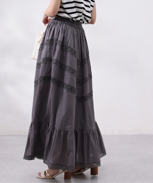 レースと刺繍にときめくデザイン 大人可愛いコットンスカート ■point コットン生地に綿レースを縫い付け、刺繡を施したスカート。 裾部分はティアードになっており、くびれた様なデザインで脚長効果もばっちり◎ レースは斜めのラインで縫い付けているので、すっきりとしたラインを作っていただけます。 ウエストはゴムの仕様。気兼ねなくストレスフリーな履き心地に。 レースに刺繍、コットン生地のボリュームと大人女子のスキが詰まったスカートです。 ■coordinate Tシャツでラフに合わせたり、サマーニットでフェミニンなスタイルにも。 コンパクトなトップスで合わせるとスタイルアップも◎ テイスト問わず合わせていただけます。 ■fabric (表地)綿100% (裏地)綿100% -------------------------------------------------- 裏地:あり 光沢感:なし 伸縮性:なし 生地の厚さ:普通 洗濯方法:手洗い可 -------------------------------------------------- ※商品画像は着用イメージです。 光や角度により、実物と色味が異なる場合がございます。また表示のサイズ感も実物とは若干異なる場合もございますので、ご了承ください。 ※着用、お取り扱いの際は、商品についている品質表示とアテンションタグを必ずご確認ください。 -------------------------------------------------- ♡をクリックでお得な情報をお知らせいたします。 <商品お気に入り登録> お気に入りアイテムのお値下げ・再入荷・在庫ラスト1点など通知を受けることができます。 <ブランドお気に入り登録> Chez toiの新商品・再入荷・SALE・クーポン配布などお得な情報を受けることができます。 -------------------------------------------------- Cheztoi/シェトワ フランス語で「あなたの家」という意味。 自分にまっすぐでそしてしなやかに生きる女性に向けたブランドです。