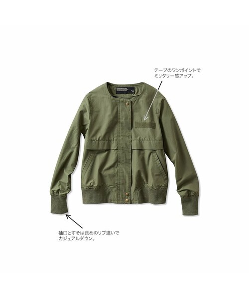 甘辛コーデの必需品!はおるだけで決まるお役立ちブルゾン パステルカラーなど、淡いトーンの着こなしが多くなる季節のおしゃれをピリッと引き締めてくれるミリタリーテイストのブルゾン。デニム×ヒールのNUSY的鉄板コーデはもちろん、今年ならば、流行のチュールスカートに合わせてもかわいい! ノーカラー仕立てですっきりコンパクトで、着心地も軽くてしなやかなので春のはおりにちょうどいい。かさばらないからバッグに入れて持ち歩きやすいのも◎。