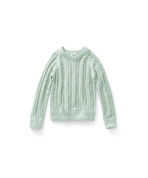 Net Bag-Stitched Knit グロッサリーストアで見かけるネット編みバッグがニットに。2種類の編み目を組み合わせたこだわり仕立て。ほどよくコンパクトなシルエットで、スカートにもパンツにも合わせやすい。シャツやボーダートップスを重ね着してもかわいくきまるから、いろんなコーデを楽しんで。