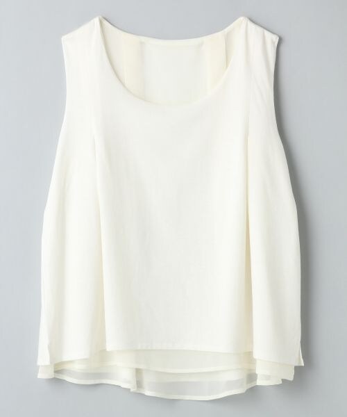 ☆リバーシブルで使えるデザイントップス☆カットとシフォンのレイヤードトップスとシフォントップスの両方でお使い頂けるデザイントップスです。程よい着丈と裾のフリルが気になる腰周りをカバーしてくれます。これから夏にかけて大活躍間違いなし!!テーパードパンツ合わせがジーナシスらしく着こなせるので、オススメです。