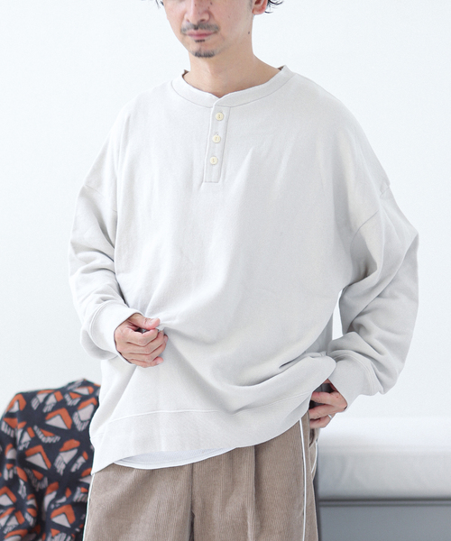 毎シーズン定番として展開している"UPCYCLEシリーズ"が23AWも登場! こちらは新型であるヘンリーネックのオーバーサイズスウェットです。 男女問わず着用出来る、もしくはカップルやご夫婦でシェアして着用いただけるユニセックスデザイン。 落ち感のあるドロップショルダーに、ゆったりした身幅、ドルマンスリーブのような太めのアームホールに加えて、トレンド感のあるやや前後差のある着丈を採用。 襟元に前立てとボタンをあしらったデザインがほどよいアクセントになっています。 素材にはサスティナブルな原料であるリサイクルコットンを採用。 本来は捨てられるはずの製品に新たな価値を与えて再生する「アップサイクル」の価値観に基づき、紡績工程で規格に合わなかった未使用の落ち綿を集めて綿糸として再利用しています。 柔らかくドライな風合いに加えて、裏パイルで肌当たりも良くロングシーズン着用できるアイテム。 フェード感のあるカラーリングで、どれも使いやすいベーシックカラーのラインナップです。 ※胸に付いている『UPCYCLE WEAR』と書かれているものは商品のデザインではなくシールですのでご注意ください。 ********************** 透け感:なし 裏地:なし 伸縮性:なし 光沢感:なし 生地の厚さ:普通 ********************** 【スタッフ着用コメント】 《スタッフH》 身長:173cm/体重:62kg/体型:中肉中背/普段サイズ:M/着用サイズ:L サイズ感:身幅広いゆったりなシルエットです。 素材感:厚すぎず、薄すぎずでオールシーズン使いやすい素材感です。 着心地:サイズ感がゆったりとしているので、着心地抜群です。 ********************** 《画像についてのご注意》 ※照明の関係により、実際よりも色味が違って見える場合があります。 またパソコン・スマートフォンなどの環境により、若干製品と画像のカラーが異なる場合もございます。 ※商品の色味は、商品アップ画像をご参照ください。 《商品のお気に入り登録について》 「カートに入れる」または「予約する」右側のハートマークを押していただくと、 再入荷、残り1点、セールなどの通知を受け取ることが出来ます。 《ブランドお気に入り登録について》 JOURNAL STANDARD relumeのトップページ右上にある「お気に入りブランドに追加」を押していただくと、 新商品や再入荷、ショップのおすすめトピックスなど、いち早くブランドの情報を受け取ることが出来ます。 本体:洗濯機洗い(弱)