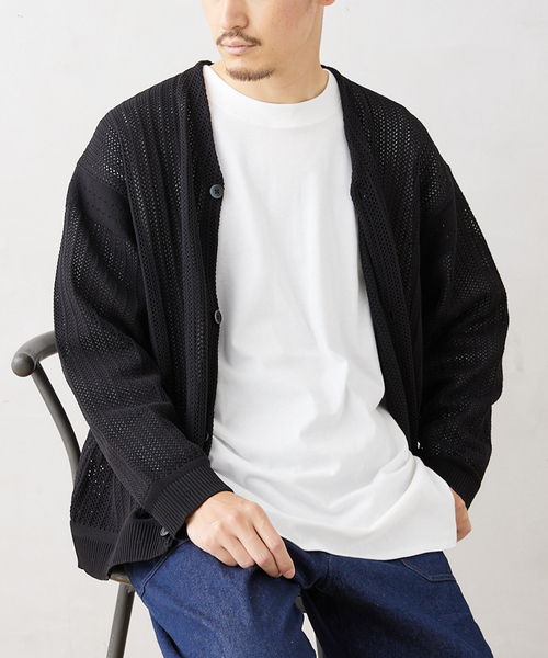 ご好評をいただいているrelumeの”洗えるニットコーデセット”の新作が登場! かぎ針調でざっくりと編み上げたVネックカーディガンとカットソーのセットアイテムです。 素材にはエシカルな原料であるリサイクルポリエステルを100%使用。 シャリ感のあるミドルゲージ糸仕立てで、気温が下がり始めた晩夏からお召しいただける素材感です。 デザインはオーバーサイズシルエット&着丈はやや短めに仕上げました。 裾と袖口のリブにガーター編みの編地変化を入れ、さらにアイレット(穴の模様)を施して軽さを表現しています。 インナーのロングスリーブTシャツは裾をほんのり丸くしたラウンドヘムのデザインを採用。 レイヤードしたときにニットから裾がちょうどいいバランスで覗くよう着丈を調整しています。 綿100%の天竺編みで吸水性に優れており、単品でも活躍する万能カットソーです。 カラー展開は定番色のブラックのほか、新色のグレー(グレージュ)、ナチュラル、カーキ、パープルを加えた全5色です。 ********************** 裏地:なし 伸縮性:なし 光沢感:なし 生地の厚さ:薄手 ********************** 【スタッフ着用コメント】 《スタッフH》 身長:170cm/体重:60kg/体型:中肉中背/普段サイズ:M/着用サイズ:L サイズ感: ややゆったりとしたサイズ感です。 素材感:柔らかい素材感です。 着心地:軽くて羽織りやすいです。 ********************** 《画像についてのご注意》 ※照明の関係により、実際よりも色味が違って見える場合があります。 またパソコン・スマートフォンなどの環境により、若干製品と画像のカラーが異なる場合もございます。 ※商品の色味は、商品アップ画像をご参照ください。 《商品のお気に入り登録について》 「カートに入れる」または「予約する」右側のハートマークを押していただくと、 再入荷、残り1点、セールなどの通知を受け取ることが出来ます。 《ブランドお気に入り登録について》 JOURNAL STANDARD relumeのトップページ右上にある「お気に入りブランドに追加」を押していただくと、 新商品や再入荷、ショップのおすすめトピックスなど、いち早くブランドの情報を受け取ることが出来ます。 本体:手洗い可能, カットソー:手洗い可能