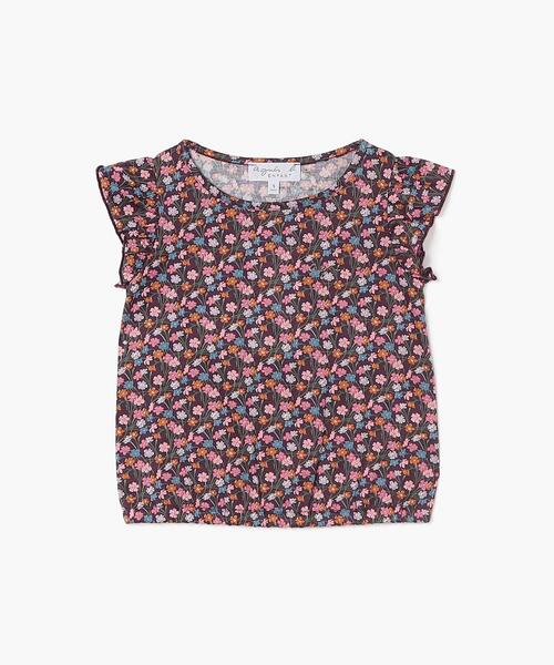 【LIBERTY】 リバティプリントのノースリーブTシャツ。 花柄プリントと袖のフリルがかわいらしさを強調するデザイン。 左胸にはゴールド箔のロゴプリントが入っています。 着心地のいいコットンジャージー素材で、今の暑い季節から秋口まで、長く重宝していただけます。 メイントップスとしてはもちろん、ジャンパースカートのインに合わせても素敵です。 (##) 120~130cm(8歳):肩幅26、バスト68、袖丈8、ゆき丈-、着丈-、身丈45 110~120cm(6歳):肩幅24、バスト64、袖丈7、ゆき丈-、着丈-、身丈41 130~140cm(10歳):肩幅29、バスト74、袖丈9、ゆき丈-、着丈-、身丈49.5 140~150cm(12歳):肩幅31、バスト78、袖丈10、ゆき丈-、着丈-、身丈53 100~110cm(4歳):肩幅21.5、バスト58、袖丈6、ゆき丈-、着丈-、身丈37
