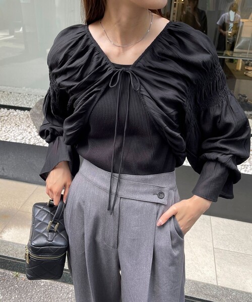◇fredy emue◇ 【2023 AW】 トレンドのレイヤードスタイルに欠かせないショート丈ボレロ ●point ・レイヤードスタイルに欠かせない今季のトレンドアイテム ショート丈ボレロ ・軽い着心地でTシャツやタンクトップの上からさらりと合わせてご着用いただけます ・シャーリングデザインや広がった袖口が女性らしく、柔らかな印象を演出します ・ゆったりとしたボリューム袖なので様々なアイテムとのレイヤードを楽しめます ・前部分のリボンは結んでトップス風な着こなしを楽しめるほか、垂らして羽織りで大人カジュアルスタイルにおすすめです ・きれいめのワンピースやオールインワンと合わせて、オケージョンコーデにも◎ 透け感:ややあり 裏地:なし 伸縮性:なし 光沢感:なし 洗濯:手洗い可 ●お取扱い上のご注意● *商品を長くご愛用していただきたいため、アテンションタグがある場合は必ずご確認の上、着用又はお取り扱い下さい。 *店頭及び屋外での撮影画像は、光の当たり具合で色味が違って見える場合があります。商品の色味は、スタジオ撮影の画像をご参照下さい。 *商品画像に関しては出来る限り忠実に表示出来るよう努めておりますが、お客様がご利用のモニターの設定及び特性により、実際の商品と比較し色味に若干の誤差が生じる場合があります。 *画像の商品はサンプルとなりますので実際の商品と仕様、加工、サイズが若干異なる場合がございます。 *製品洗い加工の商品は、多少の歪み、シワなどが見られたり、風合いやサイズ等が1枚1枚異なります。汗や雨等で濡れた時や、摩擦により色落ちし、他の衣料を汚すことがありますので(特に濃色のもの)ご注意ください。 ◇商品のお気に入り登録◇ 【お気に入りに登録 ♡マークをクリック】を是非ご活用ください! 再入荷の通知や、ラスト1点の通知、セールの通知がいち早く届きます。 ◇ブランドのお気に入り登録◇ 新商品や再入荷など、いち早くブランドのお得情報が届きます。