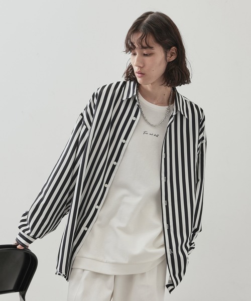【UNISEX 、イージーケア】アソートストライプオーバーシャツ■素材、機能サラッとした触り心地とキメ細やかな素材感なので手触りが非常によく快適な着心地です。適度な落ち感とドレープ感で上品で高見えします。上質でリッチな印象でシワにもなりづらく通年使える万能素材です。■シルエット、デザイン3種類のストライプをカラーによって変更しているルーズストライプシャツです。ブルゾンのインナーや単品でも着用するだけでトレンド感が漂うシルエットです。シンプルなデザインで何にでも合わせやすく一枚着でもアウターのインナーでもマルチに活躍する万能アイテムです。ただ大きいだけならない様に襟型を調節し今っぽく抜け感を出せるアイテムです。■カラー三種類のストライプをカラーによって区分けした4色展開です。■スタイリング綺麗な表情のシャツなのでライダースのインナーとスラックスでモードなスタイルや、デニムに合わせたクリーンなレトロストリートスタイルでも着回しの効く万能なアイテムです。ワイドフレアと合わせると簡単にトレンド感を演出できます。裏地:なし透け感:なし伸縮性:なし生地感・厚さ:普通ポケット:なしその他仕様:なし【モデル着用サイズ】MEN1:身長172cm 着用サイズLMEN2:身長175cm 着用サイズLWOMEN:身長172cm 着用サイズL※撮影場所やライティング、お使いのモニター環境によって色の見え方が異なる場合がございます。※商品のカラーは詳細画像の色味をご参照ください。