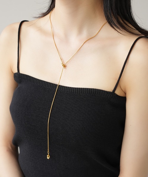 人気のスネークチェーンを使用したノットデザインがポイントのロングネックレスです。ポイントのノットチャームが揺れ動くたびにさりげなく目を惹き、女性らしい雰囲気を演出してくれるアイテム♪長さの調節が可能なので、コーディネートに合わせてお好みの長さで身につけられます◎タートルネックのトップスやワンピース、ジャケットで合わせた綺麗めコーデにも、カットソーやスウェットと合わせたカジュアルコーデにも相性抜群!普段使いはもちろん、オフィスから結婚式の披露宴や二次会、ちょっとしたお呼ばれの場など多くのシーンで大活躍すること間違いなしの優秀アイテムです!■サージカルステンレスとはサージカル=医療用の、 ステンレススティール=錆びない鋼鉄、 という2つの言葉を合わせて作られた造語です。 腐食しにくい素材で、医療用のメスなどの医療用器具や、ハサミなどにも使われています。 ・水に強いので、お風呂、プール、海でも使用可能 ・汚れ・変色・サビ・キズにも強いのでお手入れが簡単 ・金属アレルギーの方にも比較的安心して使用可能・軽量で、丈夫なのでデイリーユースに最適金属の中にはシルバーのように空気や汗によって酸化して変色したり、鉄のように錆びたりするものもありますが、サージカルステンレスの場合は腐食や熱などにも強いため、長く着用していても老朽化しにくいというメリットがあります。また耐久性も高く、表面に傷がつきにくいというのも特徴です。サージカルステンレスはアレルギーが起きにくい素材ではありますが すべての方にアレルギーが起きないことをお約束するものではありません。 その時の体調や個人差がございますので、ご使用時に異常を感じた場合は直ちに使用を中止し専門医にご相談下さい。【IAMUSE】「自分自身を楽しませるような1着を」特別な1着もいいけれど、毎日着たい1着を目指して。女性の毎日の〝楽しみ“に寄り添い、溶け込めるアイテムを提案いたします。シンプルながらもサイジングやテキスタイルはトレンド感のあるスタイルに。着回しのしやすいアイテムを提供いたします。■お気に入り登録について完売カラーの再入荷通知や、完売間近の通知、セールの通知を受け取ることができます。■ブランドお気に入り登録について新商品や再入荷など、いち早くブランドのお得な情報を受け取ることができます。取扱注意事項※サイズは、測定方法と測定者によって多少の誤差がありますのでご了承下さい。また体型によって、サイズ感に個人差がございます。(平置き採寸)※商品によってはシワがつきやすく、畳ジワや折りジワなどが強く出る場合がございます。※生地の素材や染色により、においが気になる場合がございます。※レースやシアーアイテムなどは繊細な素材を使用しているため、摩擦を避けお取り扱いにご注意下さい。※お洗濯の際には、洗濯専用ネットをご使用の上、色移りを避けるために個別での洗濯ををお勧め致します。※着用、お取り扱いの際は、商品についている品質表示とアテンションを必ずご確認下さい。※掲載画像は撮影環境により実際の色味と異なる場合がございます。※生産時期によって若干の色味、原産国が異なる場合がございますが、品質には変わりございませんので予めご了承ください。