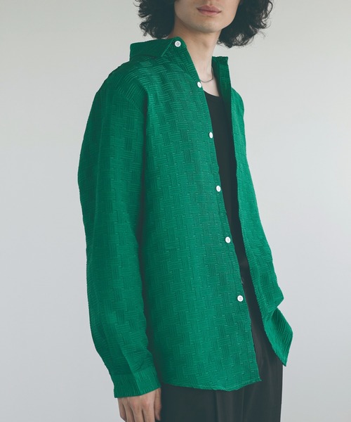 ボリューム感とエレガントなデザインが特徴のシャツです。特殊な加工技術によって表面に立体的な模様や凹凸を施されており、独特の質感を持っています。 エンボス加工は、シャツの表面に模様を浮かび上がらせる技法であり、ビッグシルエットはゆったりとしたシルエットが特徴です。これらの要素が組み合わさることで、シャツに立体感と存在感が生まれます。 大胆で洗練されたスタイルを追求する男性に向けてデザインされています。ビッグシルエットは、ゆとりのある着心地を提供し、リラックス感とモダンさを同時に表現します。また、エンボス加工によって生まれる独特の質感は、シャツ自体がアクセントとなり、他のアイテムとの組み合わせで個性的なスタイリングを実現します。 カジュアルなシーンからファッションイベントまで、様々な場面で活躍します。ジーンズやチノパンツとの相性が良く、スニーカーやブーツなどのシューズとも合わせやすいです。また、ジャケットやコートの上からレイヤードすることで、よりユニークなスタイルを作り出すこともできます。 ファッションの個性を引き立てるアイテムです。エレガントなデザインとビッグシルエットの組み合わせが、スタイリッシュかつアーティスティックな雰囲気を演出します。