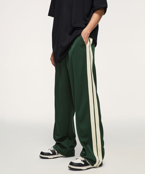 ■ユルットしたワイドシルエットが今っぽいラインジャージパンツ サイドに配されたラインテープがポイントのジャージパンツです。 リラックス感のあるセミワイドシルエットにデザインされた今年っぽいアイテム。 センタープリーツ加工が施されモードなスタイリングにも対応。 カジュアルからストリート、韓国風ファッションまで様々なスタイルにマッチしてくれます。 タウンウェアとしてはもちろん、ルームウェアとしても活躍してくれるワイドジャージパンツです。 ■シルエット 程よくゆったりとした落ち感のあるリラックスしたシルエットにデザインされています。 ■素材 伸縮性の高いジャージ素材を使用したストレスフリーなアイテムです。 ■ディティール ウエストにはゴムが入りスピンドルでサイズ調整ができます。 ★商品のお気に入り登録→【カートに入れる】右側の♡をクリック 完売カラーの再入荷通知や、ラスト1点の通知、セールの通知も受け取ることができます。 ※店頭及び屋外での撮影画像は、光の当たり具合で色味が違って見える場合があります。またご覧いただきますモニターや使用環境により実際の商品と多少色味が異なって表示される場合がございます。 予めご了承をお願いいたします。