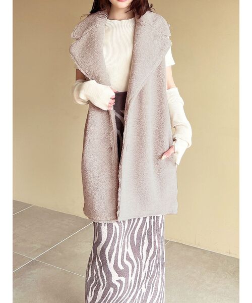エッジの効いたオーバーシルエットが魅力のテーラードジレ ▽デザイン▽ ニットワンピースやトップス×ボトムコーデに さらっと羽織れるトレンドアイテムです。 軽い着心地が快適なボア素材を使用し 大人の女性の雰囲気を表現しました。 ヒップが隠れる丈感にし、体型カバーができながら ワンランク上のスタイリングに仕上げてくれる1枚です。 ▽カラー▽ 白・ベージュの2色展開。 ▽スタイリング▽ ガウンのようにさらりと羽織ったり、ベルトでウエストを 締めてメリハリのあるシルエットを楽しんだりと着回し抜群◎ インナーを変えるだけで雰囲気の違うスタイリングになり、 シーズン長く活躍します。
