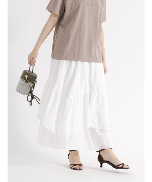 レイヤードされたようなデザインでふんわりとしたシルエットを実現するギャザースカート。 ティアード切り替えが表情感のある雰囲気を演出します。 ウエストはゴム仕様なので、お腹を締め付けない着心地もポイント◎ Tシャツやカットソーと合わせたコーディネートがおすすめです。 ※商品画像は、撮影環境やお客様のご利用のPC・スマートフォンのモニター環境などにより実物と色味に差異がある場合がございます。 【その他採寸】 F ウエスト:[ゴム仕様]62cm