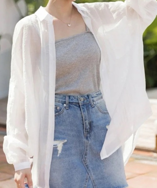 透け感があり、程よく肌見せできるシアーシャツ。 普段のコーデにプラスだけで涼しげなムードに仕上がります。 襟つきなのでオフィスシーンにも着用しやすい1着。 プチプライスなのも嬉しいポイントです。 ・トレンド感のあるシアー素材 ・使い勝手のいいベーシックデザイン ・カジュアルにもキレイ目にもマッチ