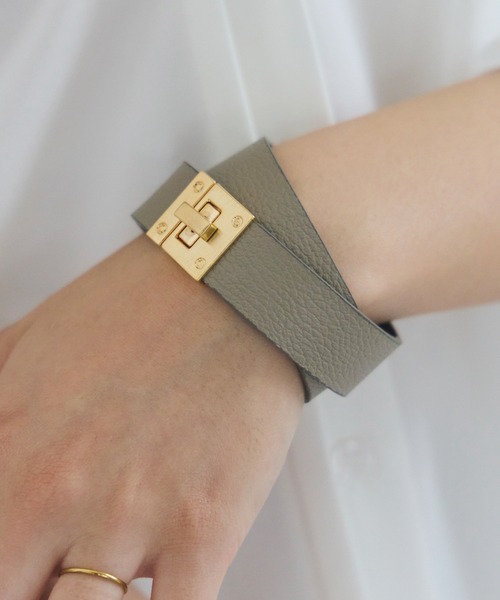 牛革 レザーに、ゴールドバックルの組み合わせた上品な印象の2連ブレスレット。いつものスタイリングにアクセントをプラスしてくれる一品、お手持ちのブレスレットとの重ね付けもおすすめです。・裏側配色・本革を使用・着脱の楽な留め具・季節問わずオールシーズン活躍ブラック裏側:チャコールグレーグレージュ裏側:モカ■本革/レザーバングル も展開中品番:5739002 検索でご覧いただけます。【お買いものをよりお楽しみいただく為に♪】▼商品のお気に入り登録(ハートマークをクリック)お気に入りアイテムの完売カラーの再入荷通知や、ラスト1点の通知、セールの通知も受け取ることができます。▼ブランドのお気に入り登録新商品や再入荷など、クーポン配布などのお得な情報を受け取ることができます。■商品注意事項■※商品画像は、光の当たり具合やパソコンなどの閲覧環境により、実際の色味と異なって見える場合がございます。予めご了承ください。※末永く愛用頂く為に、アテンションタグ・洗濯ネームを必ずご確認の上、着用又はお取り扱い下さい。※生産時期により色味が多少異なる場合がございます。予めご了承ください。
