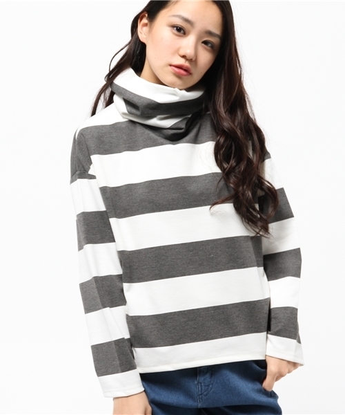 【Ciaopanic】ビッグボーダーオフタートル “カット素材で柔らかく首元ルーズデザインのNEWアイテム!!” トレンドのタートルネックデザインをカットソーのボディーで春らしく完成☆★ 太ピッチボーダーのカジュアルな雰囲気にビッグタートルがベストマッチ◎ 今のシーズンから春まで大活躍間違いなしの1枚です♪♪