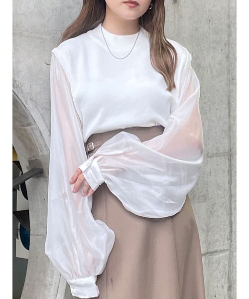 【2023 AUTUMN COLLECTION】人気アイテムがバージョンアップして再登場!切り返しのシアー素材が上品さを演出◎■アイテムスリーブ部分にシアー素材を使用した異素材ドッキングのトップスです。ボトルネックになるように首元と裾部分は太めのリブを施し、女性らしいシルエットに。スリーブ部分にたっぷりとボリュームをもたせているので透けていても二の腕のカバーが叶うのも嬉しいポイント。どんなボトムとも相性が良く、インでもアウトスタイルでも着やすく様になる1着。--------------------------------------------裏地:無し 生地の厚さ:普通透け感:無し(袖あり) サイズ感:普通--------------------------------------------【知って得する便利機能◎ 】■商品のお気に入り登録再入荷時、ラスト1点の時にお知らせします。■ブランドのお気に入り登録新商品やお得な情報など、いち早くお得な情報をゲット!ぜひご活用ください!※着用画像はフラッシュの加減で実際の製品と色味等が異なる場合がございますので、生地のズームアップ画像をご確認ください。※ご利用の端末画面の設定により実際の商品と色味が異なる場合がございます。
