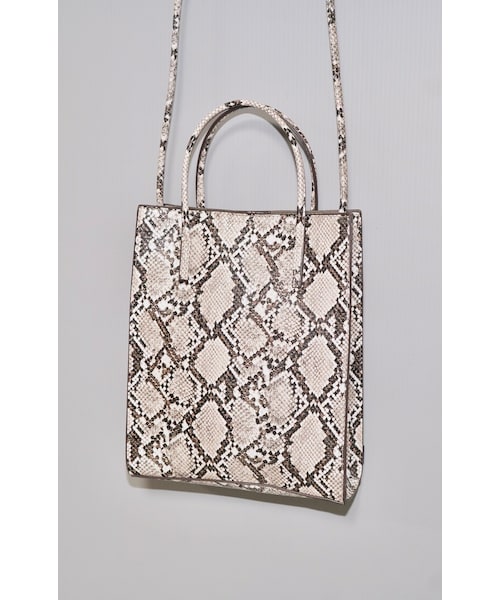 サイズ FREE 横幅 22cm 高さ 27cm マチ 9cm ストラップ丈 58cm ハンドル丈 10cm (COLOR)1color ・PYTHON (BEIGE×BLACK) 金具:GOLD (CONDITION RANK) SS:新品アイテム (DETAIL) ・ショルダーストラップ付属(取外し可能) ・ショルダーストラップは長さ調整が可能 ・メインポケット×1(開口部にマグネットボタン有り) ・内側小ポケット×2 ・素材:合成皮革 商品コード:2201210301606