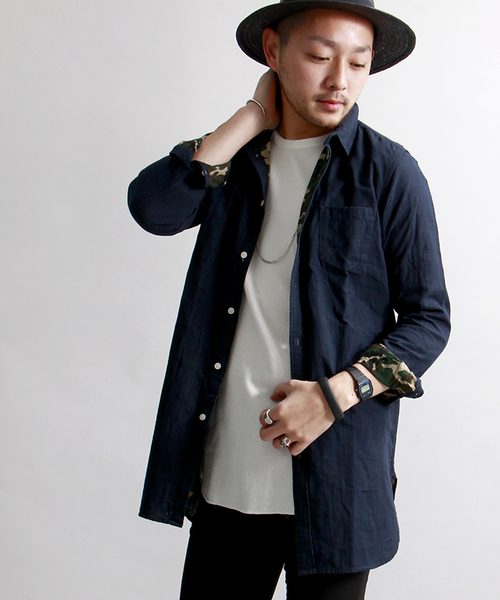 【MEN'S NON-NO 3月号掲載商品】 柔らかなダブルガーゼ地を採用したロングシャツ。通気性に優れており、肌触りや着心地が快適なのが特徴。これからの時期はフロントを開けて、さらっと羽織って頂くとショップコートのような感覚でこなれた雰囲気を着こなしにプラスしてくれます。裏地に異なる柄を配しているので、袖をロールアップするような着こなしもオススメ。今季はハットやスニーカーと合わせるような着こなしもオススメです。 WEGOの特集ページはコチラ