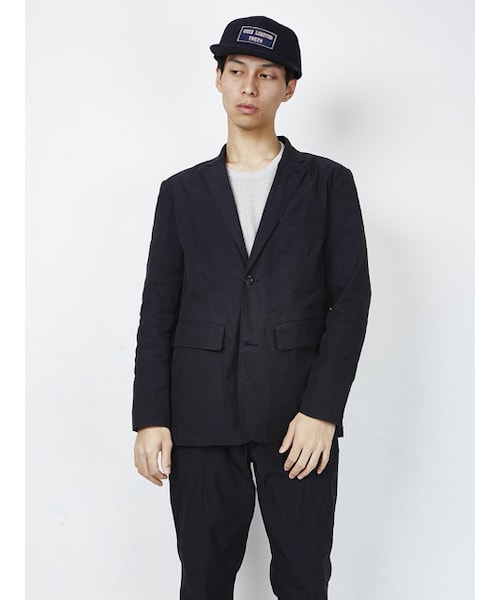 ■ジャケットです。PUCK PANTSとのセットアップアイテムになります。オーセンティックなテーラーですが、生地に光沢感ある混紡素材を使用、更に洗いをかけたカジュアルな雰囲気をもっているのが特徴です。内側の両サイドにストライプ柄のシアサッカー生地、そして左胸ポケット、内ポケットにキュプラを使用する等、ディテールにも拘ったジャケットです。また、首部分にチェーンが付きます。オリジナルのハンガーが付属します。