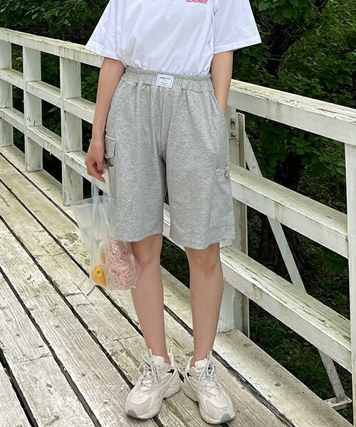 スウェット素材のハーフパンツです✨ フロント部分とロゴがおしゃ見えするポイントです! サイドポケット付きでトレンドのカーゴパンツ風デザインでトレンドライクな一着です! 夏のイベントにぴったりなハーフパンツです!