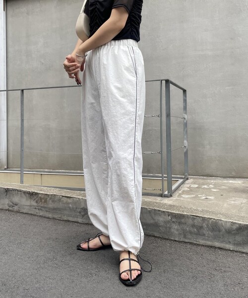 サイドに細いラインが入ったパラシュートパンツ商品ポイント・シルエットに特徴があるのでスタイリングに新鮮味が出る・しわも気にならないナイロン素材・アウトドアや旅行にもおすすめ・フリルなど甘めのトップスもカジュアルに着られる・サンダルはもちろん、ショートブーツにすれば秋まで長く着られるスタイリングポイント・コンパクトなTシャツを合わせてシンプルに・シャツを羽織ってきれいめカジュアルにも**********************透け感:なし裏地:あり伸縮性:なし光沢感:なし**********************▼洗濯方法手洗い可能※撮影場所やお使いのモニター環境により若干お色味が異なる場合がございます。特にロケの撮影では明るく見える傾向にございます。※商品はサンプルで撮影をしております。若干の仕様が変更になる場合がございますので予めご了承の上ご注文くださいますようお願いいたします。▼商品のお気に入り登録完売カラーの再入荷通知や、ラスト1点の通知、セールの通知も受け取ることができます。▼ブランドのお気に入り登録新商品や再入荷など、いち早くブランドのお得な情報を受け取ることができます。