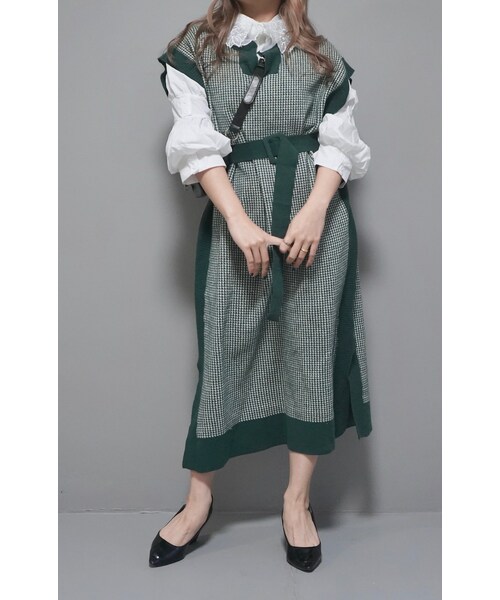 サイズ FREE 総丈 116cm 肩幅 58cm バスト 114cm ベルト全長 115cm (COLOR)1color ・GREEN×WHITE (CONDITION RANK) SS:新品アイテム (DETAIL) ・ベルト付き ・千鳥格子柄 ・ニット/伸縮性有り ・素材:50%アクリル/28%ポリエステル/22%ナイロン 商品コード:2201210301651