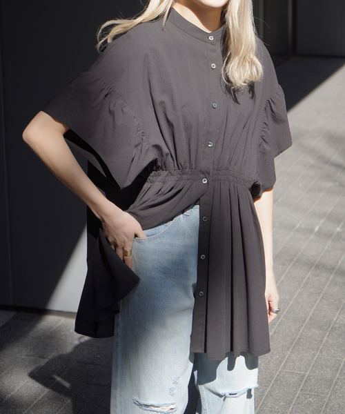 【2023SS】JOINT WORKSウエストのシャーリングがデザインポイントのチュニックブラウス。前を留めて着ても、開けて羽織としても着用していただけます。【COMMRE / コムル】物や情報が溢れる世の中で自分らしくある為に洋服が不可欠であるように。スタンダード・エラボレート・ワーク・エスニック・ヴィンテージ・スポーツのキーワードを軸にトレンドをMIXさせて今の気分にちょうどいいリアルクローズを提案します。※取り扱いについては、商品についている洗濯表示にてご確認下さい。※商品の色味につきまして、お客様のお使いのPCのモニター環境により実際のカラーと画像の色味が違って見える場合が御座います。予めご了承の上、ご注文下さい。※店頭・外での撮影画像は光の加減で、実際の商品より明るく見える場合が御座います。商品の色味はスタジオ撮影の画像を参考にして下さい。本体:手洗い可能