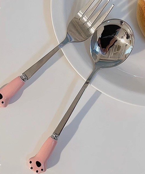 《Made in I》 2023 New Item. 『:HOME CAFE♡アニマルスプーン&フォークセット:』 〇Design 〈WHITE・IVORY・BLACK・PINKの4色展開〉 ・持ち手が肉球…!? レトロなアニマルデザインスプーンとフォークセットの可愛いカトラリーシリーズ。 ・可愛らしい韓国風雑貨で気分も上がる♪ ・おうち使いはもちろん、ピクニックやお出かけ時のお弁当にも◎ ・プレゼント、ギフトにもおすすめです。 ・可愛らしいデザインでお洒落なカフェタイムが楽しめるカトラリーセットです。 【SIZE】スプーン:15.2cm, フォーク:14.8cm 韓国、北欧インテリアが好きな方は是非。 \ お買い物をよりお楽しみいただくために / ● 商品のお気に入り登録(ハートマークをクリック) 完売カラーの再入荷や、ラスト1点のお知らせ、セール情報などの通知を受け取ることができます。 ● ブランドのお気に入り登録 新商品や再入荷など、お得な情報をいち早く受け取ることができます。 ● 最短で翌日お届け 商品をカートに入れた後、注文内容の確認ページで「即日配送」を選択していただければ、最短でご注文した翌日にお届け致します。 是非ご利用頂き、お買い物をお楽しみください。