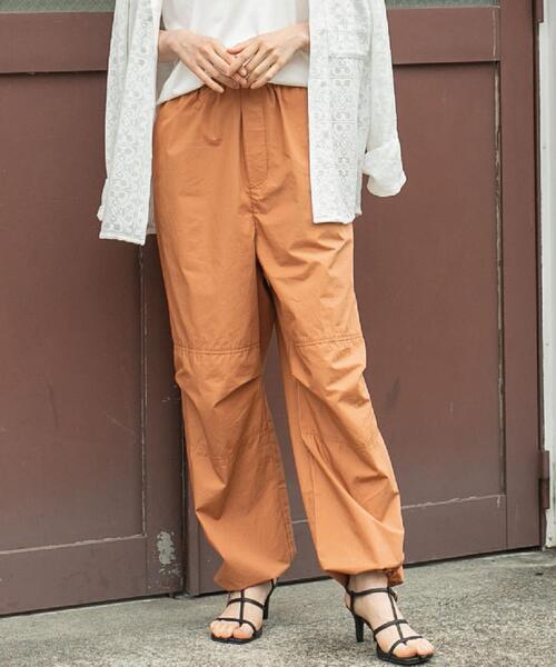 トレンドのパラシュートパンツの新作は張りのあるポプリン素材での提案■デザイントレンドのミリタリーパンツは、ゆるっとしたレッグラインの要所でタックを施した凝ったバルーンシルエット。より本格的なミリタリー要素を加えたデザインで主役にもなる一本です。ドローコード仕様の裾で、シルエット変化を楽しんで頂けます。■素材コットンのハリ感があるポプリン素材を使用。程よくハリ感と微光沢感があるため、カジュアルになりすぎない風合いが魅力です。■スタイリングシンプルなコンパクトTシャツはもちろん、甘めのブラウスでのミックススタイルも旬コーデです。秋冬の足元は、トラックブーツと合わせて大人カッコ良く決めるスタイルもおすすめです。透け感:オフホワイトはややあり生地の厚さ:普通光沢感:ややあり裏地:なしウエストゴム:ありサイドポケット:あり家庭洗濯:手洗い可能【注意点】※撮影商品はサンプルの為、実際の仕様と異なる場合がございます。※画像の商品は光の照射や角度、お使いのモニター環境により、実物と色味が異なる場合がございます。スタジオ物撮りの画像が実物の色味に一番近くなっております。※予約商品の場合、お届け予定はあくまでも目安となります。生産の都合上、お届け時期が前後したり実店舗入荷時期とずれる場合がございますので、あらかじめご了承ください。品名:ポプリン ミリタリーPT 品番:7640-634-0261