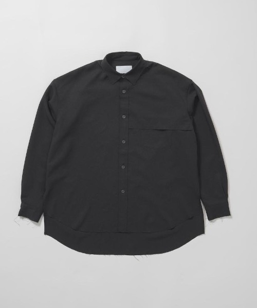 断ち切りのディティールを使用したシャツ。 清涼感のある麻調合成繊維で作られた、サラサラとした着心地のカットオフシャツです。 ポケットを覆う大胆なデザインは、今季のテーマとのリンクを感じさせます。 都会的な一面も持ちながらクラフト感があるアイテムとなっています。 ※洗濯方法については、必ず商品のタグをご確認ください。