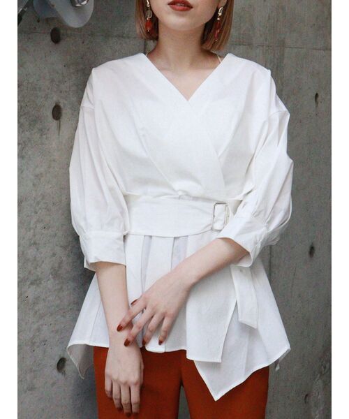 【2023 AUTUMN COLLECTION】コーデの主役になるトップスシチュエーションに左右されないヘビロテブラウス■アイテムシンプルながら隅々まで洗礼されたデザインで洒落感たっぷり◎Vネックがデコルテを綺麗に魅せてくれます。裾部分のアシンメトリーなペプラムデザインがポイント!ウエストのベルトでスタイルアップも!ウエスト後ろ部分はゴム仕様になっているのでベルトを締めてもストレスなく着用可◎裾はペプラムデザインで広がっているので細身のシルエットのボトムと相性抜群です!-------------------------------------------透け感:ホワイトのみややあり 伸縮性:なし生地の厚さ:普通 サイズ感:普通-------------------------------------------【知って得する便利機能◎ 】■商品のお気に入り登録再入荷時、ラスト1点の時にお知らせします。■ブランドのお気に入り登録新商品やお得な情報など、いち早くお得な情報をゲット!ぜひご活用ください!※着用画像はフラッシュの加減で実際の製品と色味等が異なる場合がございますので、生地のズームアップ画像をご確認ください。※ご利用の端末画面の設定により実際の商品と色味が異なる場合がございます。