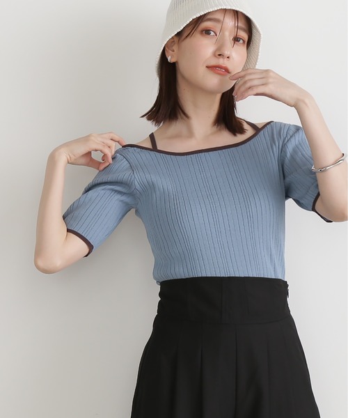 襟ぐりと袖口にあしらった配色トリミングがアクセントになったリブニット。襟まわりのほどよい開き具合と後ろネックのクロスデザインで、抜け感をプラスしたデザインです。身頃はシンプルなシルエットなので裾をインするのがおすすめ。デニムカジュアルにもフェミニンなスカートにもキレイめに着回しがきくアイテムです。**********************透け感:なし裏地:なし伸縮性:あり光沢感:なし生地の厚さ:普通**********************