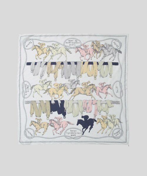 【素材】 シルクならではの光沢のある綾織り生地 【デザイン・シルエット】 1968年から続く「ロペ」のアーカイヴより柄を抽出。今の気分に合わせてリデザインした柄の数々。スカーフコレクション。 ホースレース柄(10):イギリスの伝統的な競馬がモチーフ。馬具や躍動感ある競走馬の風を感じる柄。 バルーン(15):たくさんの気球や飛行船、旧式飛行機が飛ぶ、のんびりした広がりある気持ちの良い景色を想像させる柄。 ベルトシルエット(29):馬具やタッセルに、ベルトや金具のシルエットが大胆に重なり合い浮かび上がる印象的な柄。 馬具(32/65):金具モチーフを並べてグラフィカルに表現。 【カラー】 5色展開 ※画像の商品はサンプルです。実際の商品と仕様、加工、サイズが異なる場合がございます。 ※撮影場所やライティング、お使いのモニター環境によって色の見え方が異なる場合がございます。 ※商品のカラーは画像の色味をご参照ください。動画は仕様説明のため、色味が実物と異なる場合がございます。