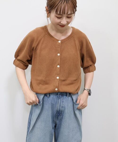 ■デザイン ・リネンブレンドで通気性に優れたサマーニットカーディガン。 ・衿ぐりの形状を調整することで前後で着用可能。プルオーバーとしてもカーディガンとしても着用でき、幅広くコーディネートに活用できる万能なアイテム。 ・ゴムで袖口をしめたバルーン袖がポイント。 ・トレンドを意識した短めの丈。 ■素材 ・リネンブレンド糸特有の少しざっくりとして乾いた質感と、不揃いな感じの凹凸感が清涼感を醸し出す夏にぴったりな素材。 ***ウォッシャブルニット*** ご家庭の洗濯機でお洗濯して頂けるニットです。 洗濯ネットをご使用頂き、形を整えて陰平干しして頂くのがおすすめです。 ■カラー ・アイボリー/キャメル/チャコールグレーの3色展開 【洗濯表示】 40℃以下の弱い洗濯機洗い可/酵素系漂白剤可/タンブル乾燥禁止/日陰つり干し/150℃以下のアイロン仕上げ可/石油系ドライクリーニング可透け感[無し] 裏地[無し] 伸縮性[有り] 光沢感[無し] 生地の厚さ[普通] 付属品[無し] ポケット[無し]●製品寸法:M:バスト53cm 着丈57cm 桁丈46cm 裾幅37cmL:バスト56cm 着丈60cm 桁丈48cm 裾幅40cm備考: