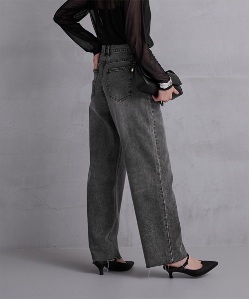 裾のカットオフデザインがポイントのデニムパンツ。 ◆DETAIL 美脚を演出するストレートライン。 ハイウエストでスタイルアップを叶えます。 ベーシックなシルエットなので穿きやすく、デイリーに活躍します。 ◆FABRIC しっかりした厚みのあるデニム生地を使用。 ※当商品は機械による生産の過程上、どうしても"生地を織る際の糸の継ぎ目"や多少の"ほつれ"、他繊維の"混紡"、また、形やサイズや柄に多少の"誤差"が生じる場合がございます。 ※サイズは、実寸サイズを測っているため多少誤差がでる場合があります。製造工程の関係上、各採寸箇所実寸(平置き)より【約-3cm~+3cm】程度は誤差の許容範囲とさせて頂いておりますので、予めご了承くださいませ。 ※メーカーより密封状態で入庫し、検品時に再度袋詰めを行っておりますが、素材により染料等の臭いが強い場合がございます。 ※発送上の状態によって商品がシワになる場合がございます。 ※商品により色落ち・色移りがある場合がございますので、品質表示をご確認の上、お取り扱いにご注意くださいませ。 【伸縮性】斜め方向に多少あり 【透け感】なし