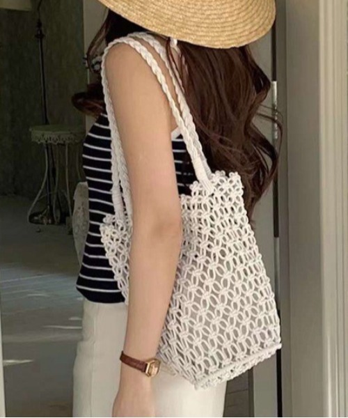 【Point】 ■ ざっくりした太いコットン糸資材を編み上げた、立体感が可愛いかごバッグ。広めのマチ付きなので見た目以上の収納力。 ■ ちょっとしたお出かけや、リゾートスタイルにオススメ◎シンプルなスタイルにプラスするだけで、シーズンムード高まるアイテムです。春夏のスタイリングにはもちろん、重たく見えがちな冬のニットやコートにプラスして軽さを出すのもお勧めです。 【Fabric】 ■ 透け感: 有り ■ 伸縮性: あり ■ 洗濯方法:手洗い可 【お買いものをよりお楽しみいただく為に】 ■商品のお気に入り登録をおすすめします♪ 【♡をクリック!】 ■商品のお気に入り登録お気に入りアイテムの完売カラーの再入荷通知やラスト1点の通知、セールの通知も受け取ることができます。 ブランドのお気に入り登録・新商品や再入荷などクーポン配布などのお得な情報を受け取ることができます。 【お取り扱い上のご注意】 ■モデル着用カラーは撮影環境の兼合いにて、実際のカラーと異なって見える場合がございます。商品カラーに関しましては物画像をご参考に確認をして頂ければと思います。 ■商品画像はサンプルのため、色味や仕様変更がある場合がございますので予めご了承ください。 ■画像と柄の位置が異なる場合がございます,ご了承下さい。 ■照明の関係により実際よりもやや明るく見える場合がございます。またパソコンなどの環境により若干製品と画像のカラーが異なる場合もございます。予めご了承下さい。 ■発送上の状態によって商品シワになる場合がございます。
