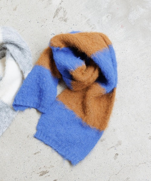 ■デザイン■ シャギーボーダーBIGプルオーバーとお揃いのマフラー。 ニットと一緒に合わせて全身ビッグボーダーでまとめたパンチあるコーディネートもおすすめ! もちろん単体で使ってコーディネートのポイントにしても◎!