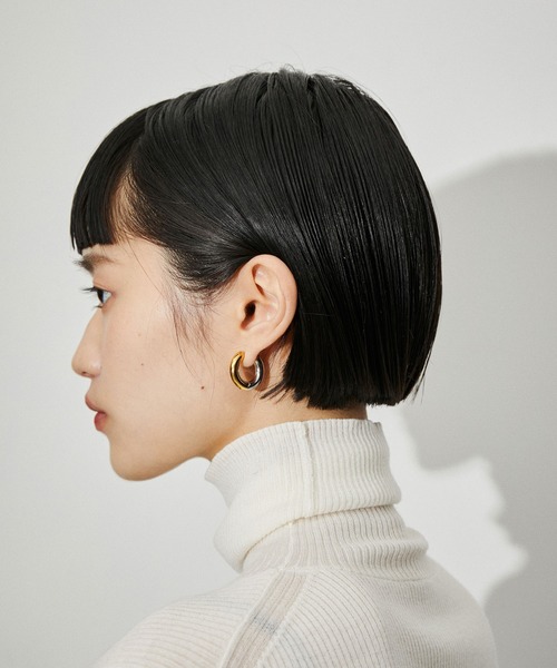 《キャッチレス仕様》定番のフープピアスにボリューム感とキャッチ—さをプラス。他のアクセサリーとの色合わせに迷わないバイカラーデザインが魅力のピアス ◆2023◆ ADAM ET ROPE' FEMME 【Material】 ステンレスと、ステンレスにIP(イオンプレーティング)ゴールドメッキを使用。 【Design】 ゴールドとシルバーのバイカラーがキャッチ—な太めのフープピアス。小さすぎず程よい存在感があり、バイカラーなので他のアクセサリーとの色合わせにも迷うことなく、コーディネートに取り入れやすいデザイン。また、キャッチの無い仕様なので、着脱のしやすさや紛失しにくい点も魅力。 【Color】 ゴールドとシルバーのバイカラーのみ1色展開。