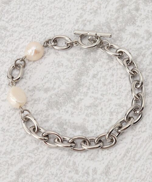 【デザイン】 マンテルでひっかけるだけの簡単チェーンブレス。 ポイントにひとつぶひとつぶ光の加減で表情の異なる上品な淡水パールを使用。 オンからオフまで幅広いコーディネートに活躍できるアイテムです。 【カラー】 006 シルバーカラーメッキ 007 ゴールドカラーメッキ 店舗へのお問い合わせ商品番号:C70-87108 ●製品寸法: 00:全長17.2cm 幅0.8cm 備考: